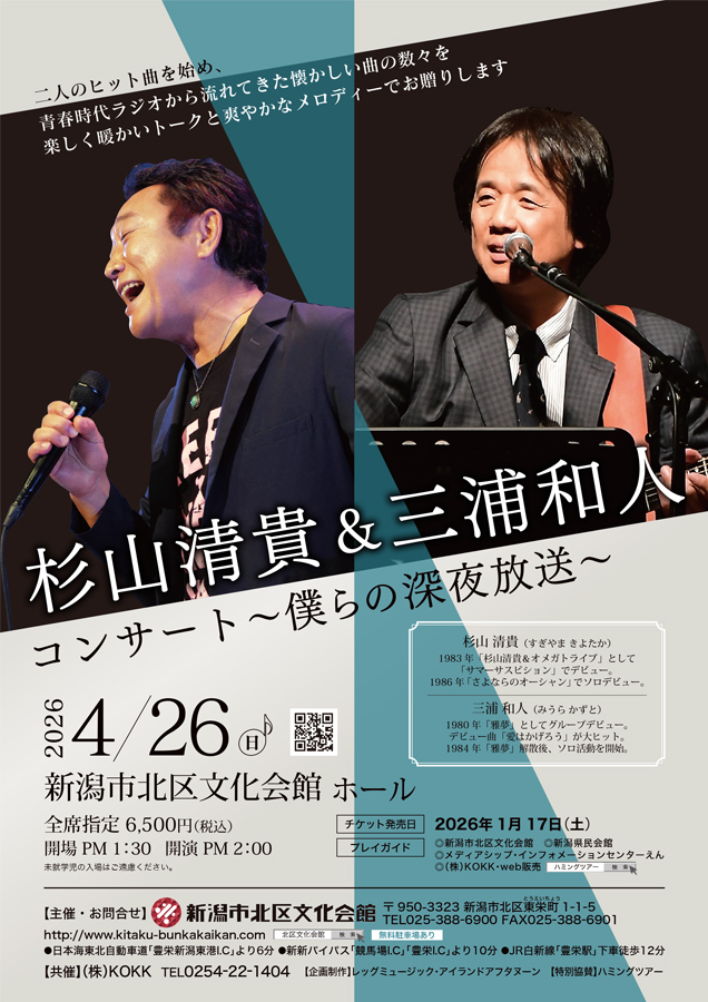 杉山清貴と三浦和人が北区文化会館にやってきます!