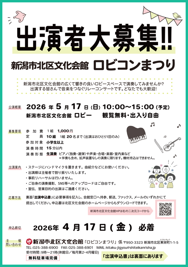 新潟市北区文化会館「ロビコンまつり」係 宛