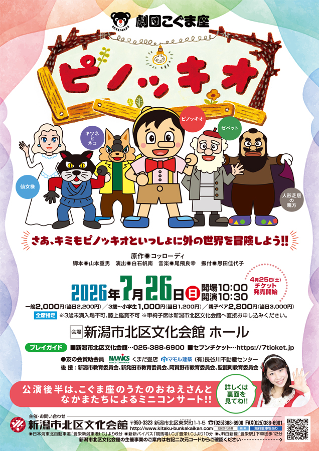 ・車椅子席をご希望の方は新潟市北区文化会館まで